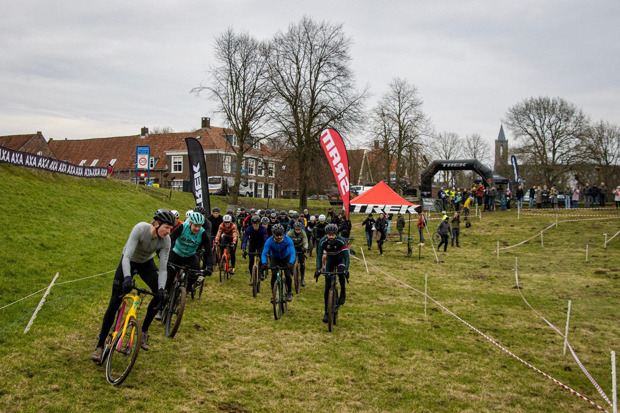 De Castle Cross wordt verreden in het weiland naast het kasteel van Amerongen, aan de Rijn en langs de dijk naar Wijk. Een prachtige stukje weiland als decor voor de ultieme fun veldrit. Fiets mee met een crossfiets, gravelbike, MTB of zelfs je wegfiets, als je het jezelf écht moeilijk wil maken. Naderhand krijg jij in de Proloog een warme kop kOERz-soep en kun je je fiets afspuiten.